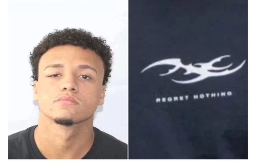 Vitor Hugo Oliveira Simonin, preso sob suspeita de envolvimento no estupro coletivo de uma adolescente de 17 anos em Copacabana, na zona sul do Rio de Janeiro (RJ), chamou a atenção ao chegar à delegacia vestindo uma camiseta com a frase “Regret nothing”.