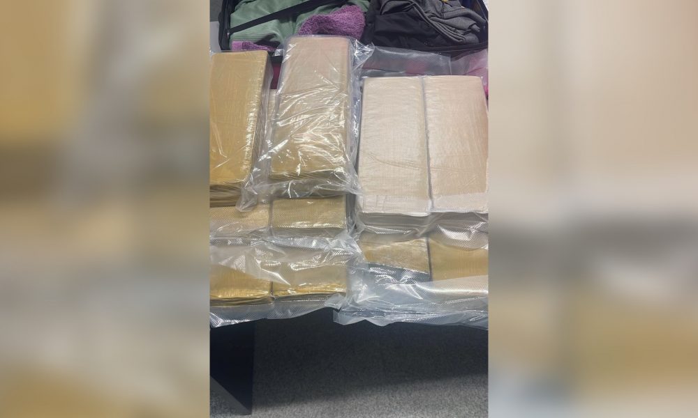 Os policiais encontraram 10,20 kg de maconha aproximadamente, divididos em tabletes e embalados a vácuo, escondidos na bagagem.