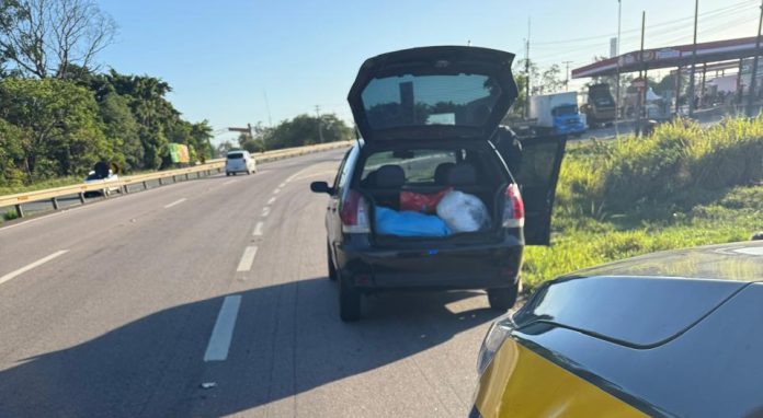Durante a vistoria no porta-malas do automóvel, os policiais encontraram vários sacos contendo a droga. Ao serem questionados, os ocupantes do veículo não informaram a procedência nem o destino final do material apreendido.