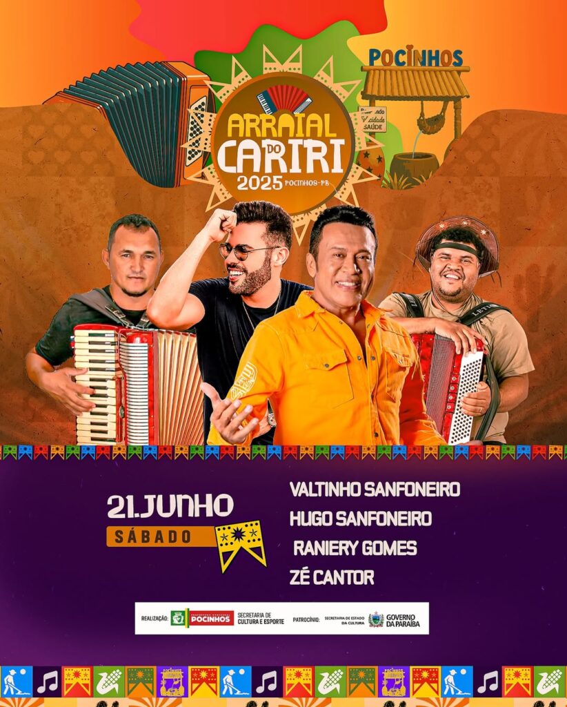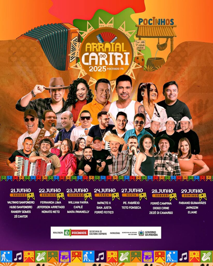 Começa hoje a festa junina do municipio de Pocinhos, o Arraial do Cariri terão 7 noites de festas, até o dia 29 de junho com grandes atrações confira a programação: