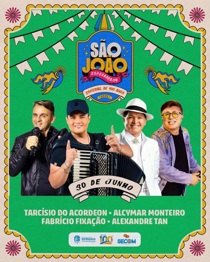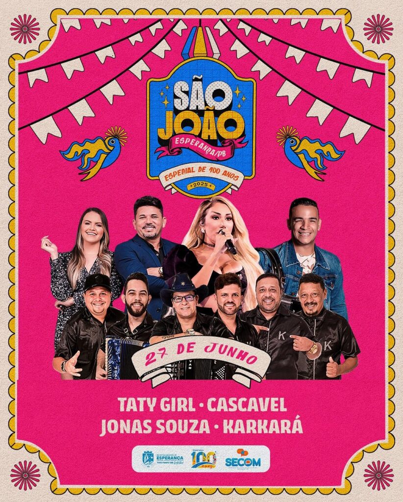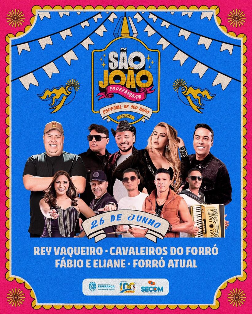 A cidade de Esperança entra no clima do São João com uma edição especial e histórica em comemoração aos 100 anos do município, sob a nova gestão do prefeito Thiago Moraes!